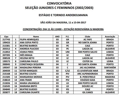 estágios, e para a participação das nossas juniores no apuramento para a Fase