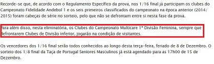 equipas da Divisão inferior, jogarão na condição de visitantes.”