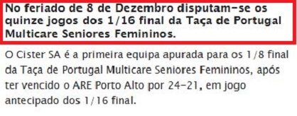 jogo adiadoA próxima eliminatória será já a disputa dos 1/8 Final (16 equipas), será previsivelmente disputada em 06-02-16. Com o sorteio marcado para 21-12-15, na Federação.